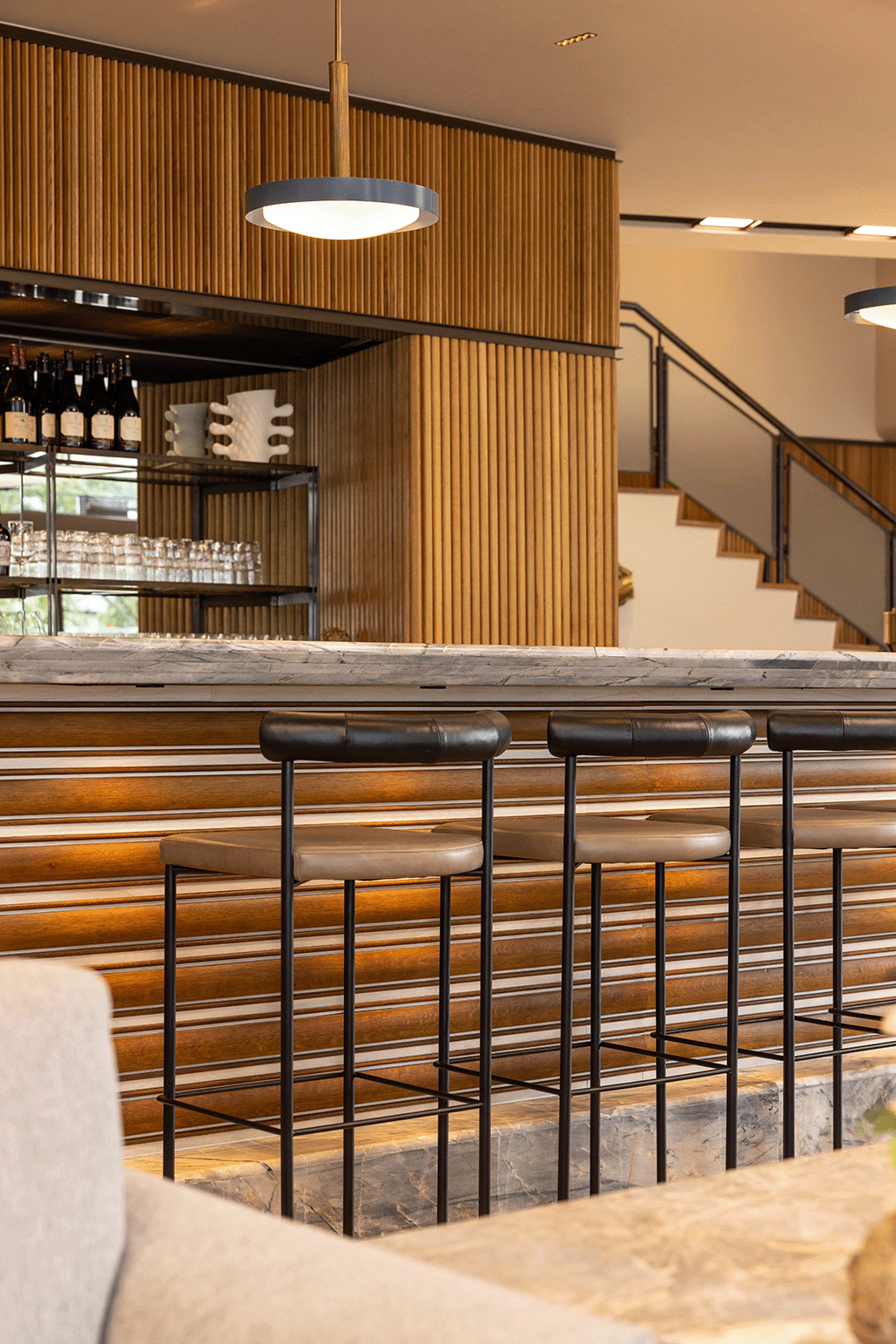 Retail spaces flank the main lobby to the east and west, enhancing the connection to the street for all building users.