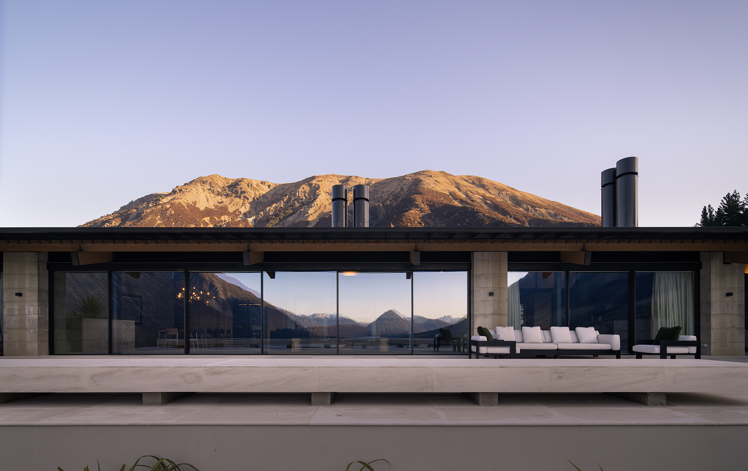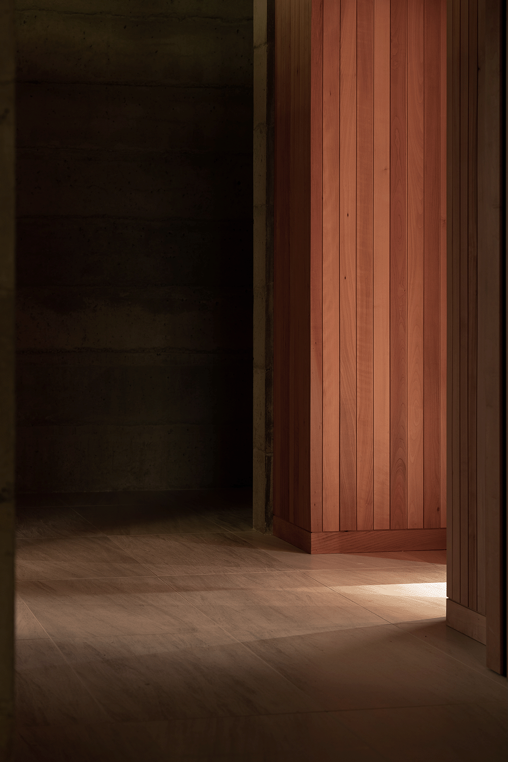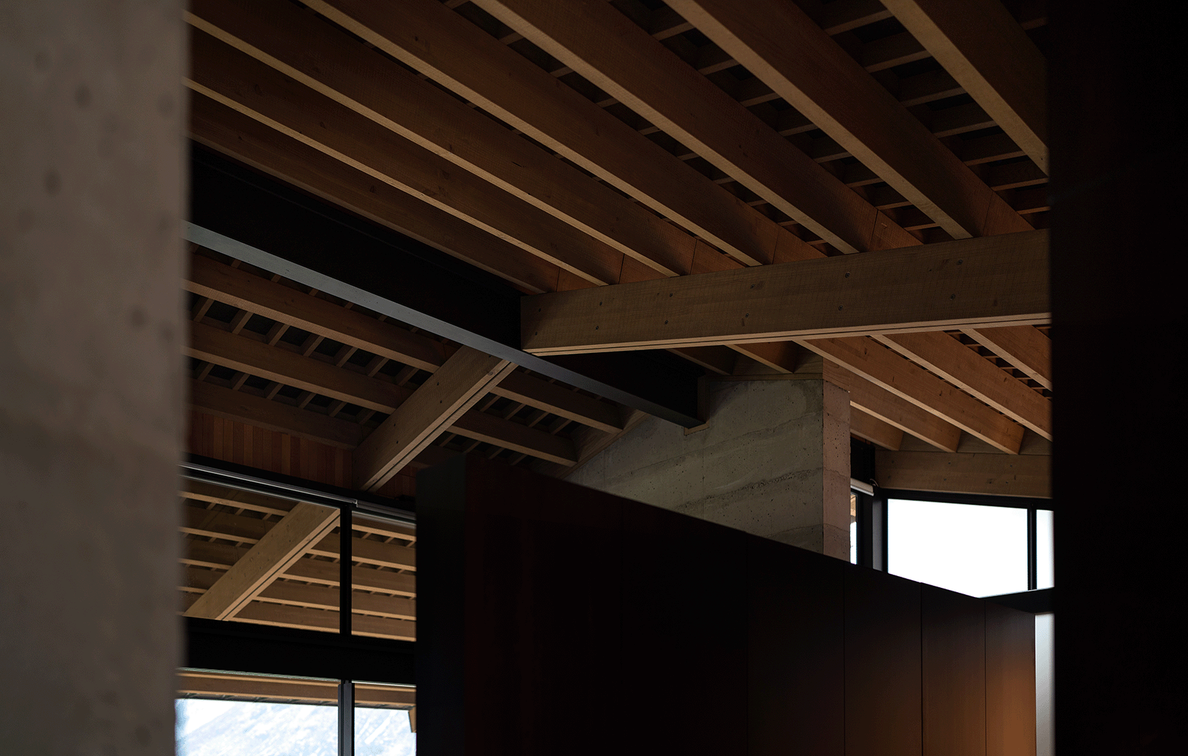 "We had this incredible history of how the site had been inhabited previously - hundreds of years ago - alongside the environmental considerations associated with an alpine environment. We wanted to create something that could provide a sense of safety and retreat from the mountainous elements while still feeling fully immersed in the landscape, says project principal Jonathan Coote. "The simple pitched roof form is a reference to the agricultural use of the area and the utilitarian but beautiful farm structures and sheds that dot the local landscape. It gives the building a sense of lightness and connection externally and texture and warmth internally. It also enhances the experience of the 'weight' of the limestone elements.