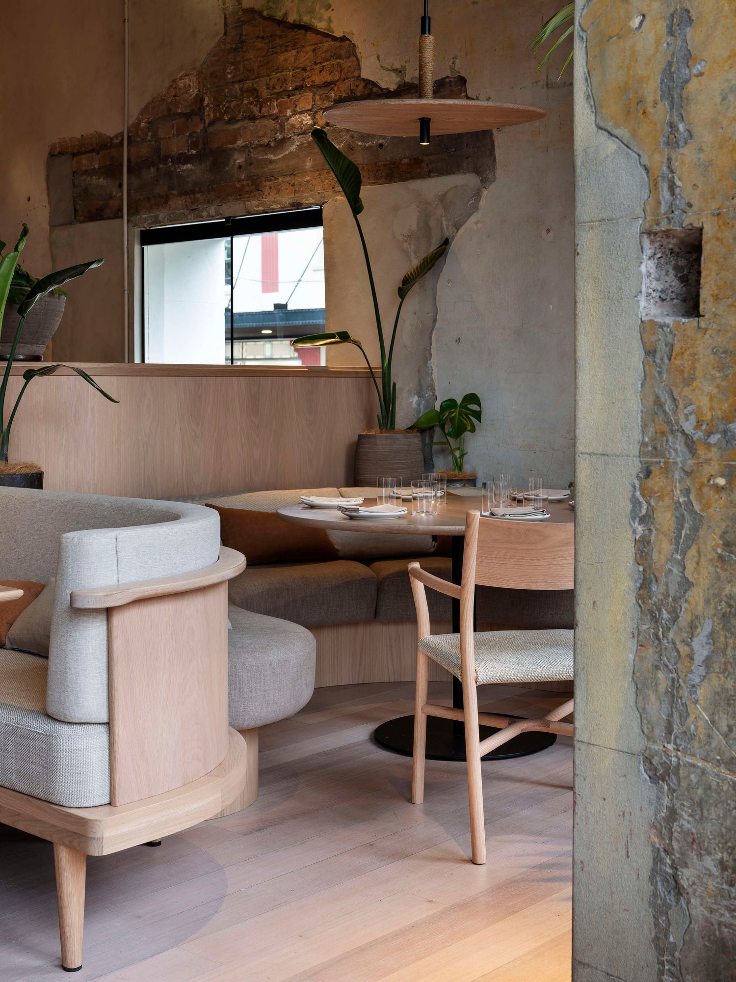 Mr Morris is located in Britomart in what was previously Cafe Hanoi, with the interiors having undergone a beautiful, light-paletted refresh by Cheshire Architects. With oak making up the majority of the room, offset by characterful brick and plaster, the 70-seat space features a variety of seating options for almost any group capacity— from family-sized round booths to more intimate tables and shoulder-to-shoulder bar stools. There is also a private dining room, known as Mrs Morris, that offers an intimate dining experience for up to 20 guests with a dedicated chef for the duration.