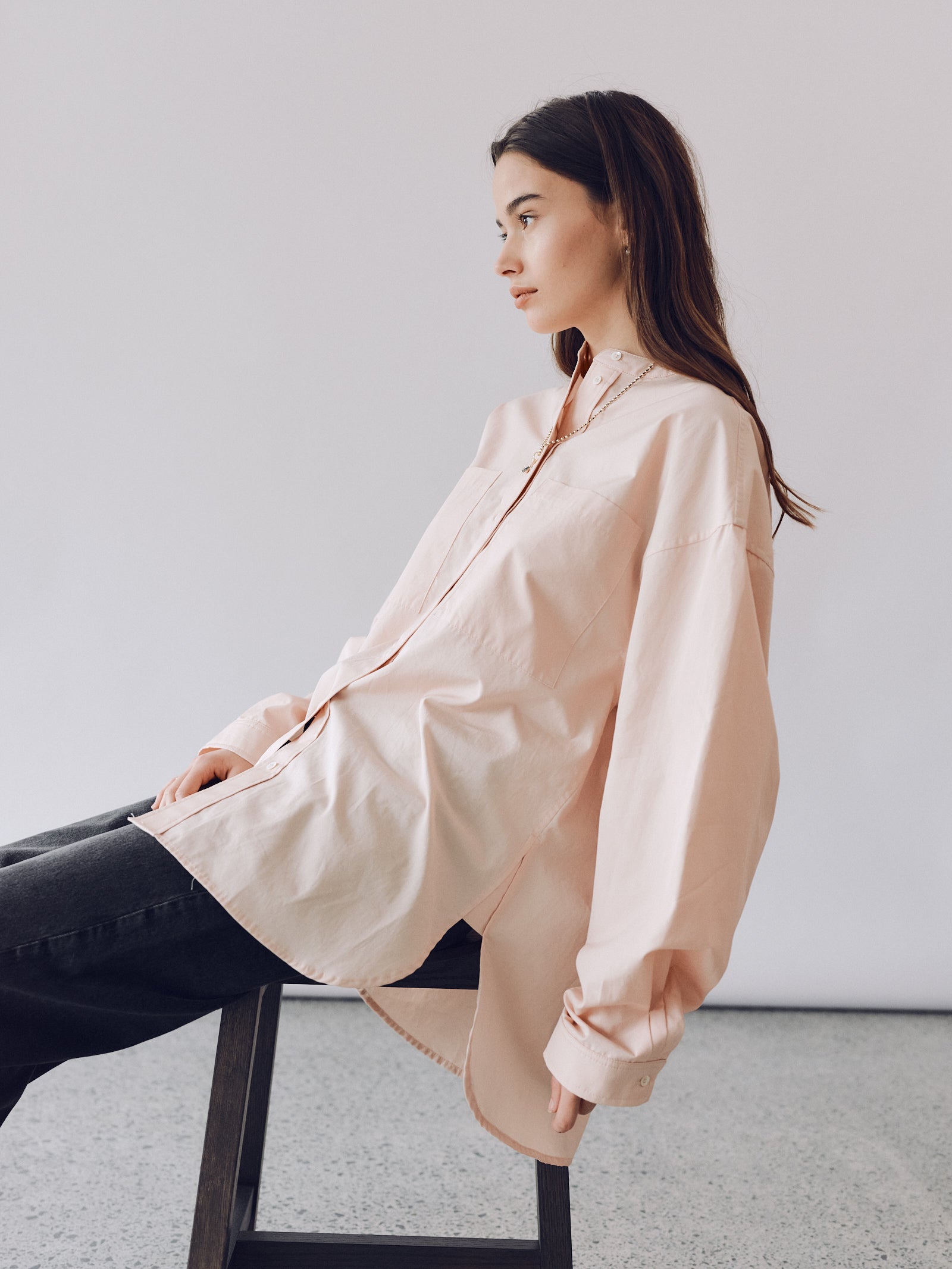 Collarless Shirt - Peach