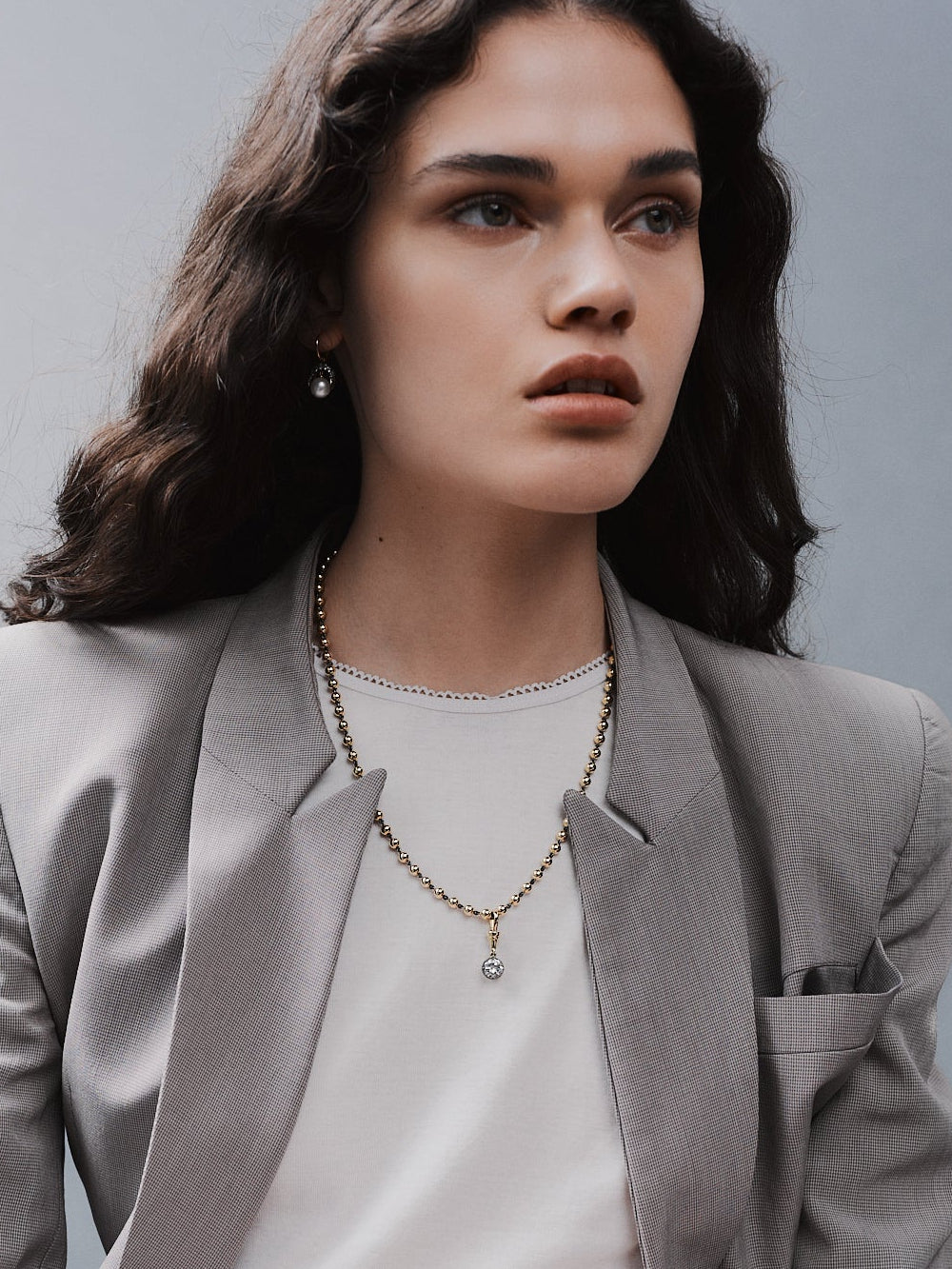 Ball n Chain - 16" Yellow Gold Necklace with 0.25ct Diamond