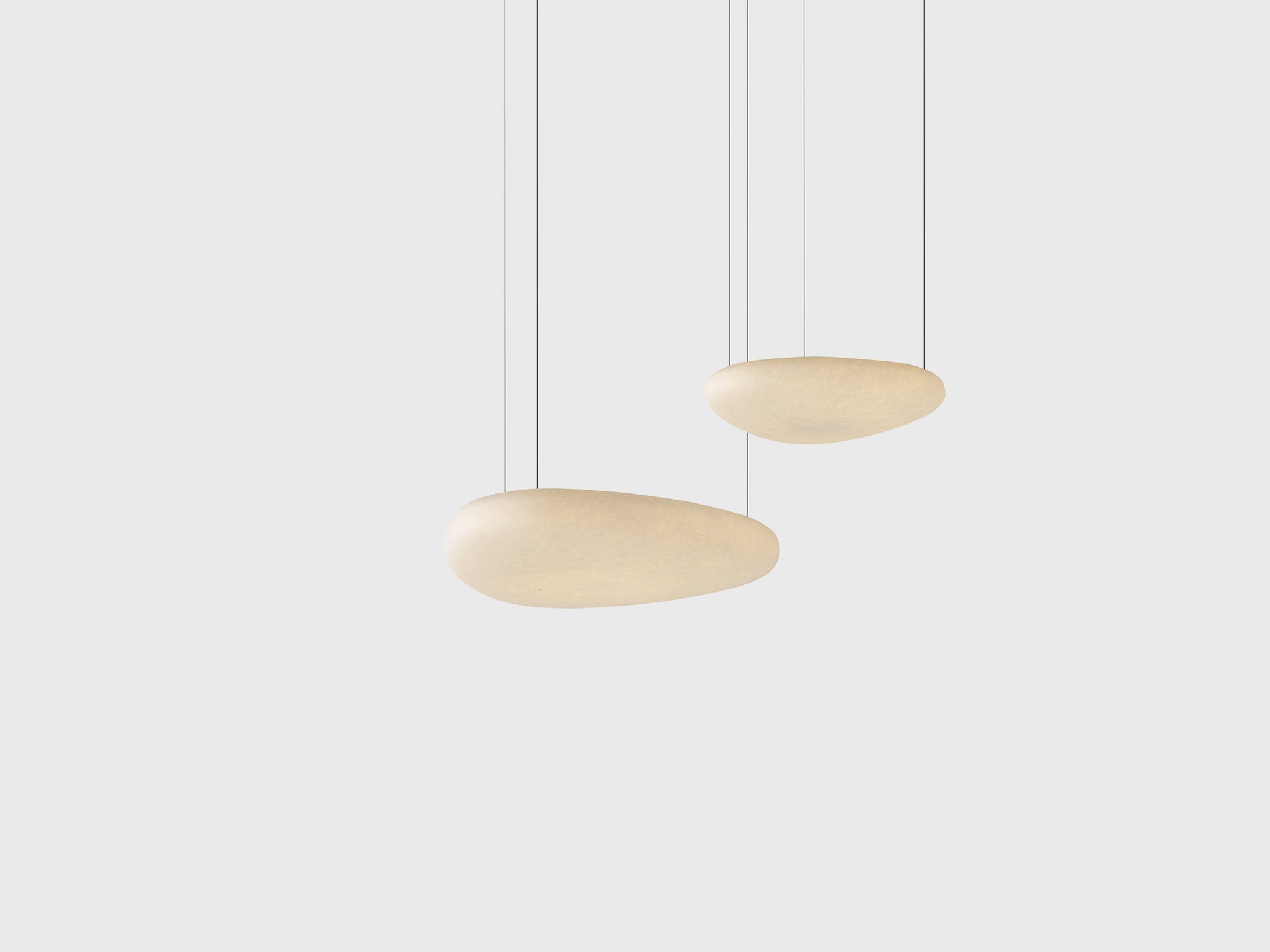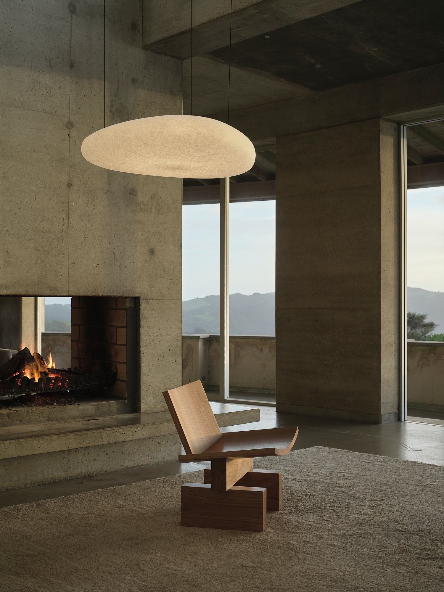 Designed by Daniel Schofield, the Vent Pendant draws on the interplay between form and function, where two elemental shapes converge to sculpt light in dual directions.