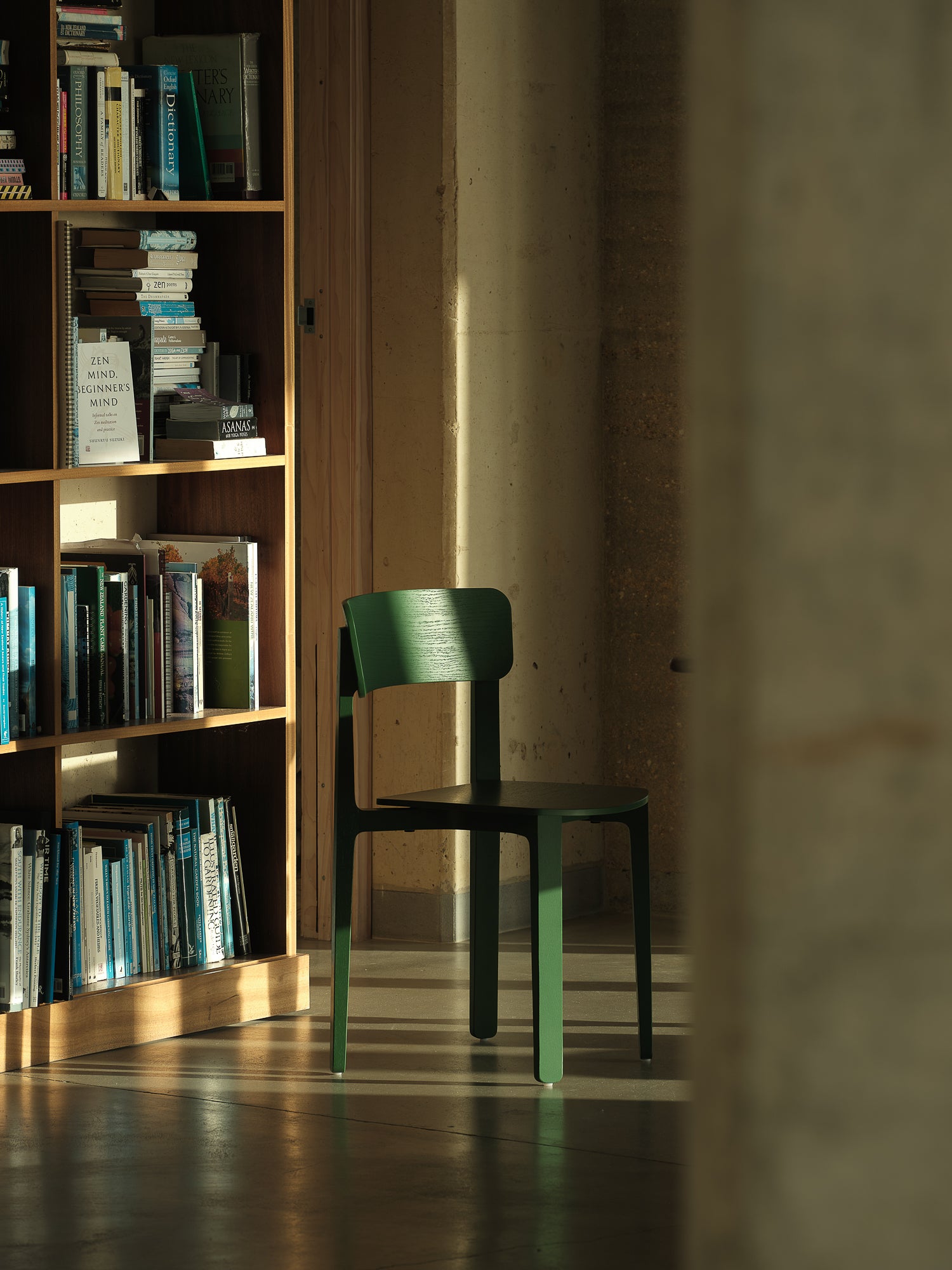 Crafted in cast aluminium or bronze, a conical shade delivers a focused beam downwards, while a triangular body allows an ambient glow to escape upwards, gently illuminating the surface of the metal.